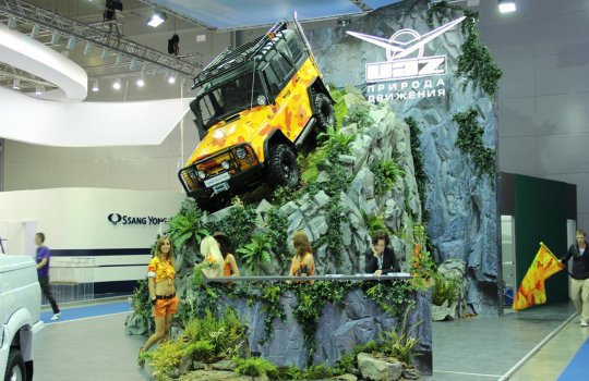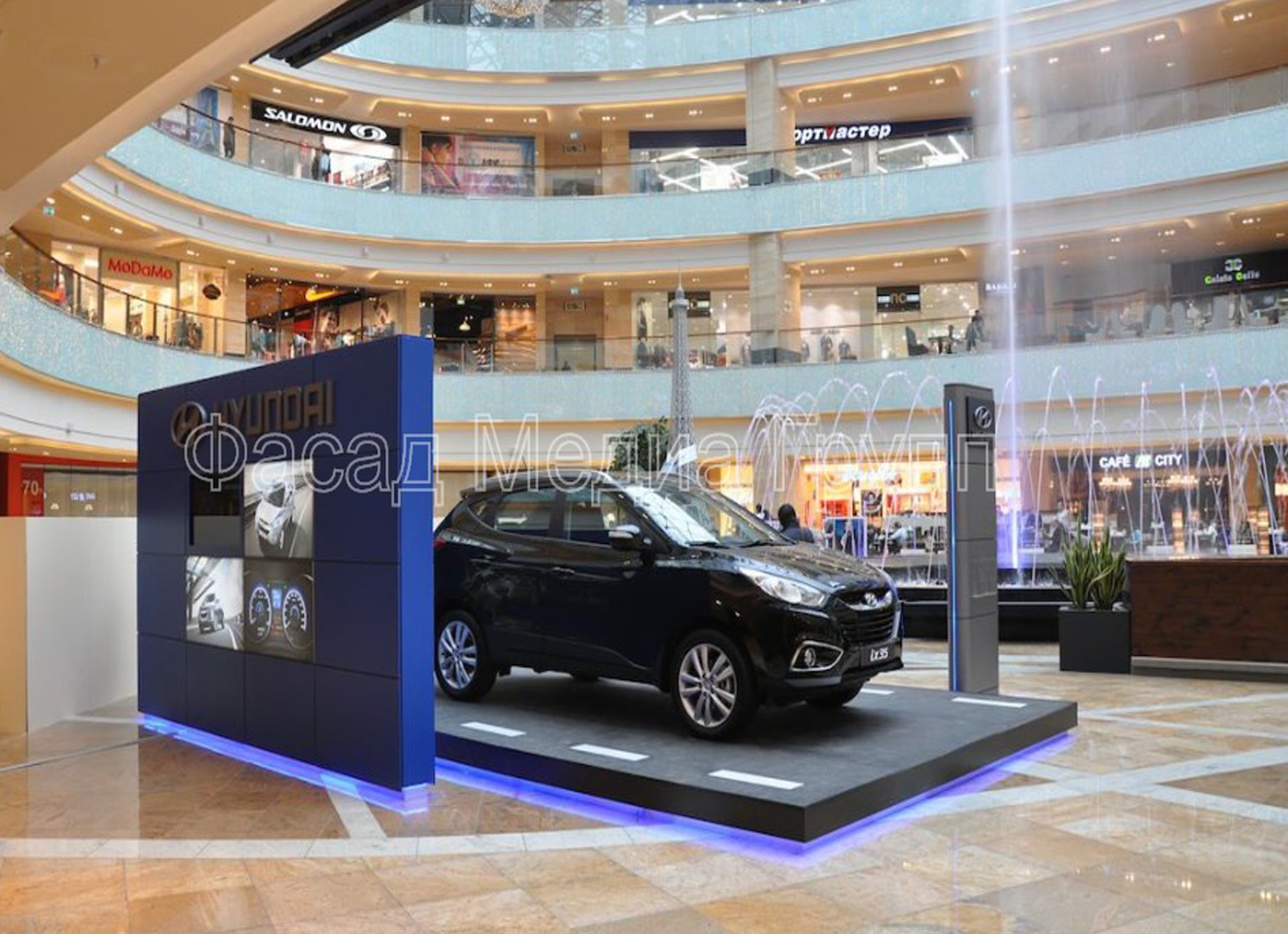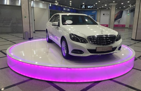 Как видим, существует большое количество подиумов для авто самого различного вида. В настоящее время особую популярность завоёвывают диджитал-конструкции, воспроизводящие видеорекламу за счет светодиодных панелей.