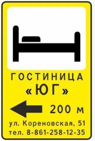 Место для информационных знаков или дорожных указателей выбирают в начале отрезка пути, на котором расположен объект инфраструктуры. Такие знаки устанавливаются, как правило, за 100 – 200 м. до рекламируемого объекта инфраструктуры. Итак, дорожные знаки в рекламных целях разрешено устанавливать: