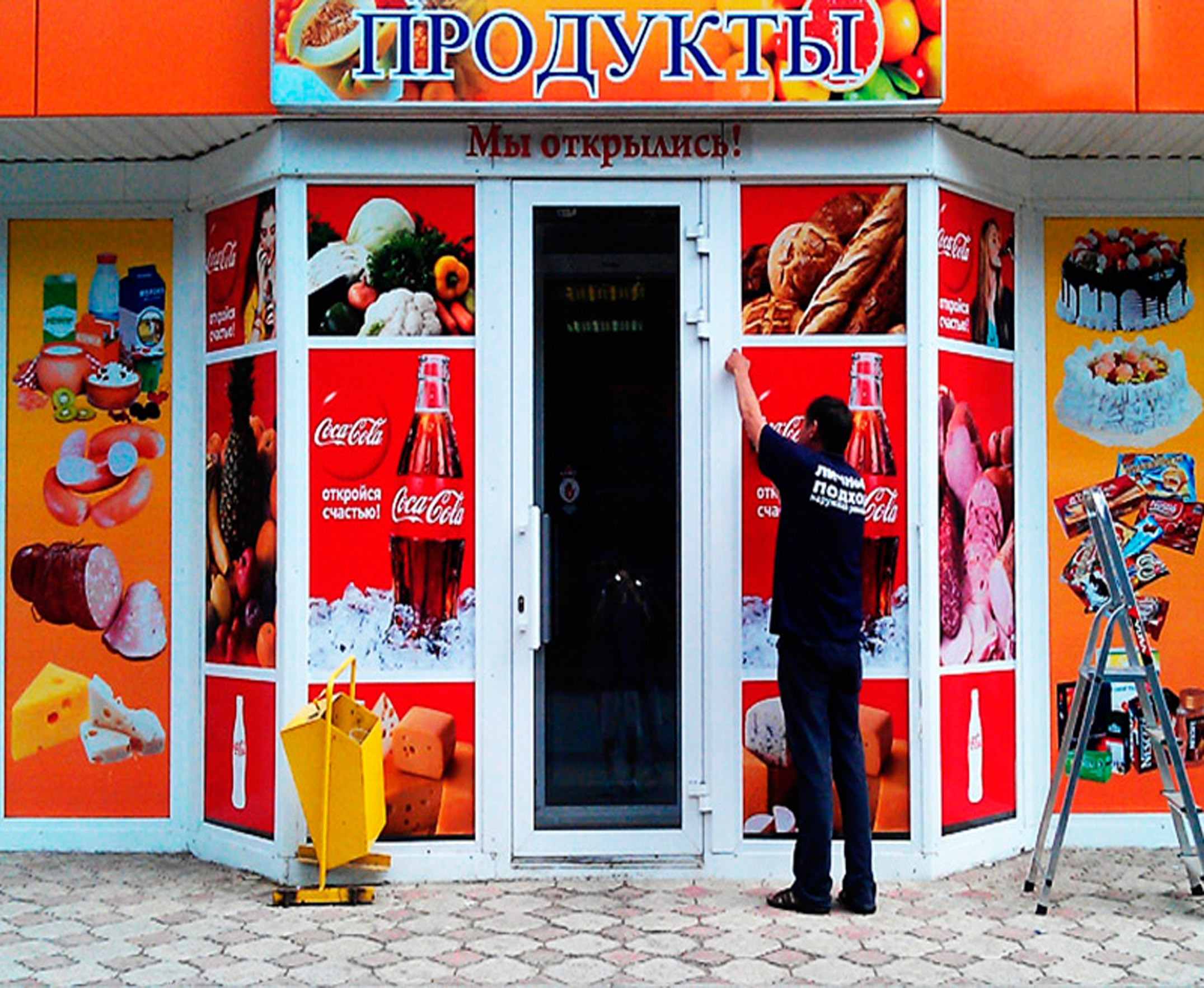 Необходимо особо отметить, что виниловая пленка не деформируется и не выцветает под влиянием ультрафиолета и агрессивных веществ. За счет плотности, высоких клеевых свойств материала реклама, напечатанная на самоклеящейся пленке, идеально подходит для эксплуатации в агрессивной среде в течении длительного периода.